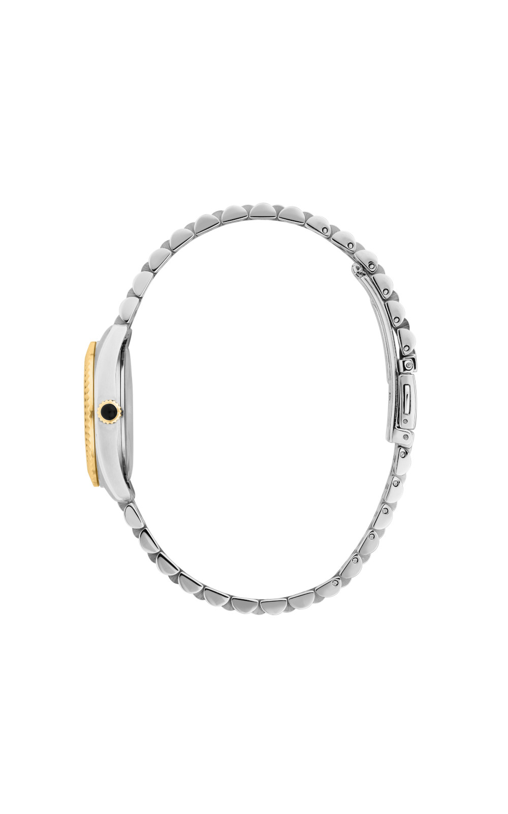 Γυναικείο ρολόι διαμέτρου 28mm με μηχανισμό Quartz ακριβείας. Έχει χρυσό καντράν με χρυσούς δείκτες και λεπτομέρειες και είναι διακοσμημένο με πέτρες. Η κάσα του είναι από ανοξείδωτο ατσάλι με κρύσταλλο από ορυκτό κρύσταλλο. Έχει μπρασελέ από ανοξείδωτο ατσάλι και κούμπωμα ασφαλείας. Είναι αδιάβροχο (5 ΑΤΜ).