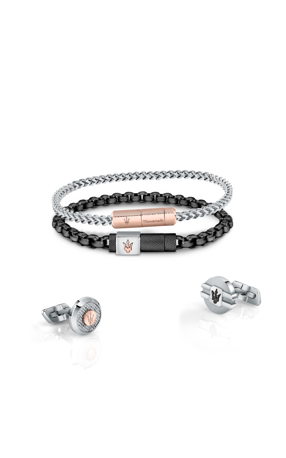 Ανδρικό βραχιόλι MASERATI από ανοξείδωτο ατσάλι. To βραχιόλι έχει ασημένιο και ροζ χρυσό χρώμα με λογότυπο της εταιρείας(21,5cm).