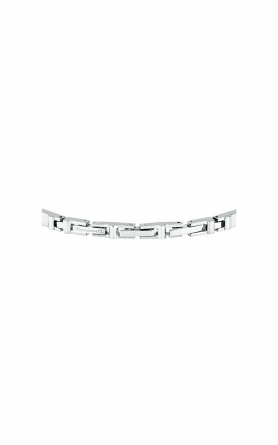 Ανδρικό βραχιόλι MASERATI από ανοξείδωτο ατσάλι. To βραχιόλι είναι ασημένιου και γκρι χρώματος με μπλε πέτρα από ζαφείρι που καλλιεργείται στο εργαστήριο και λογότυπο της εταιρείας(18,5+3cm).