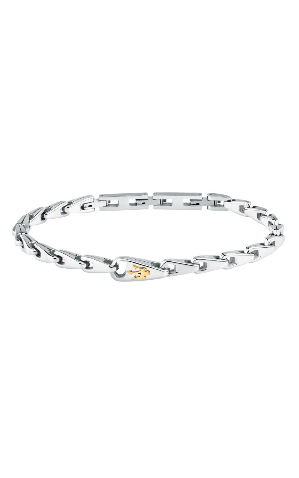 Ανδρικό βραχιόλι MASERATI από ανοξείδωτο ατσάλι. To βραχιόλι είναι ασημένιου χρώματος, με χρυσή τρίαινα(18+3,5cm).