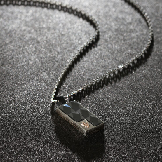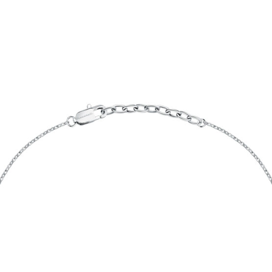 Ανδρικό κολιέ MASERATI από ανοξείδωτο ατσάλι με κεραμικά στοιχεία. To κολιέ είναι ασημένιου χρώματος με λογότυπο της εταιρείας και μαύρες λεπτομέρειες(45+5cm).