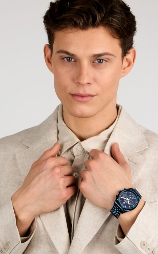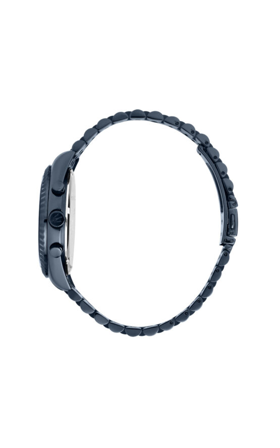 Ανδρικό ρολόι Quartz χρονογράφος ακριβείας διαμέτρου 43mm. Έχει μπλε καντράν με ασημένιους δείκτες, και λεπτομέρειες. Η κάσα του είναι από ανοξείδωτο ατσάλι με κρύσταλλο από ορυκτό κρύσταλλο. Έχει μπρασελέ από ανοξείδωτο ατσάλι με κούμπωμα ασφαλείας. Είναι αδιάβροχο (10 ATM).