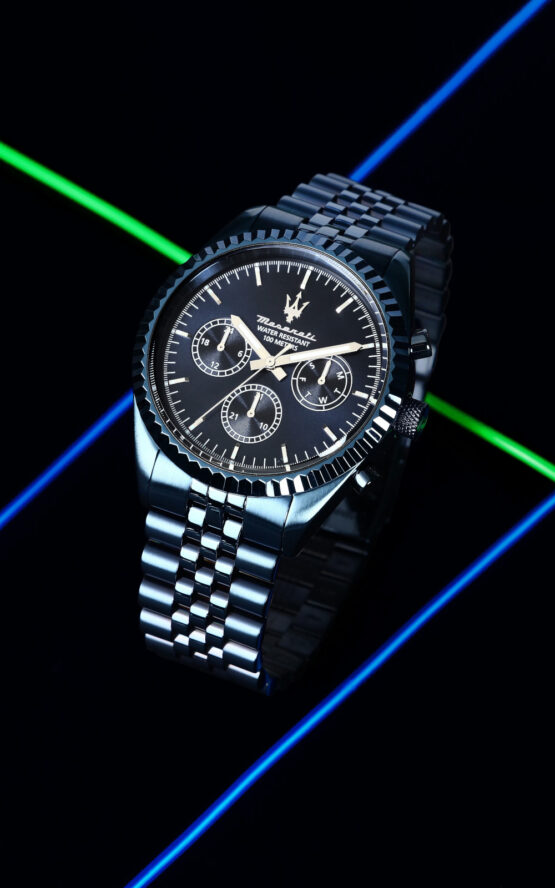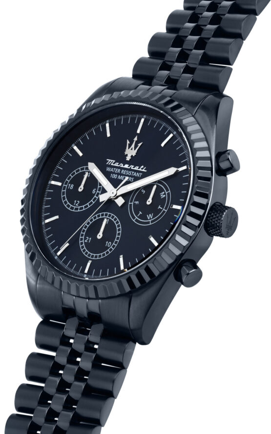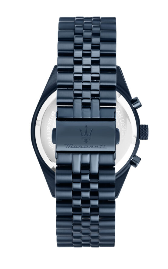 Ανδρικό ρολόι MASERATI BLUE EDITION R8873600011 διαμέτρου 43mm, με μηχανισμό Quartz χρονογράφος ακριβείας, μπλε καντράν, κάσα και μπρασελέ από ανοξείδωτο ατσάλι.