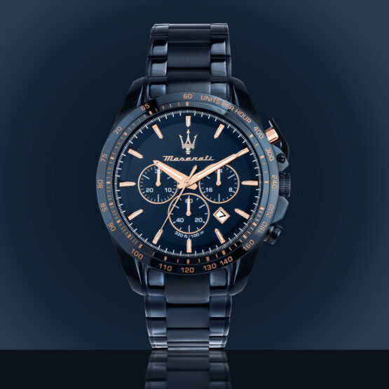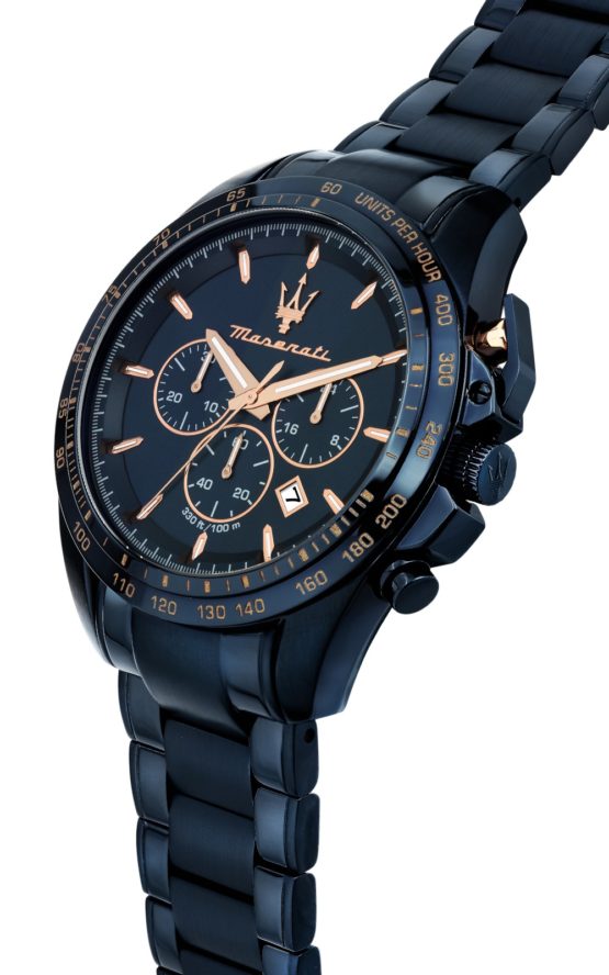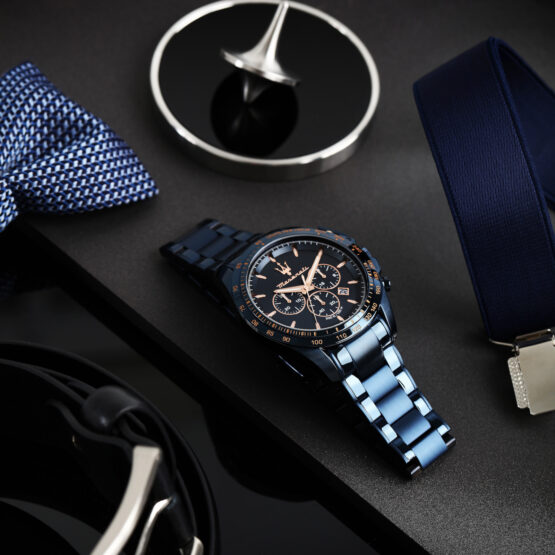 Ανδρικό ρολόι MASERATI BLUE EDITION R8873612054 διαμέτρου 45mm, με μηχανισμό Quartz χρονογράφου ακριβείας, μπλε καντράν, κάσα και μπρασελέ από ανοξείδωτο ατσάλι