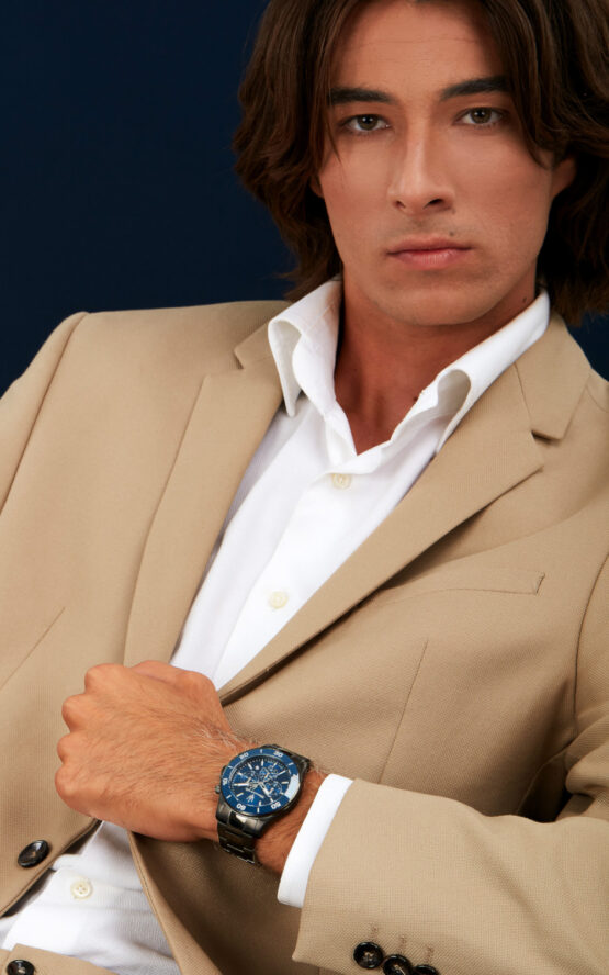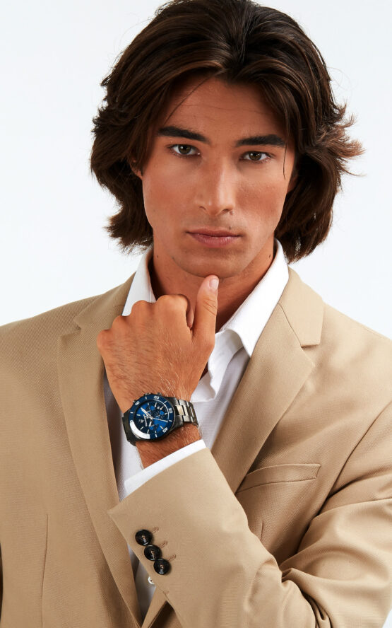 Ανδρικό ρολόι διαμέτρου 43mm με μηχανισμό Quartz χρονογράφου ακριβείας. Έχει μπλε καντράν με ασημένιους δείκτες, λεπτομέρειες και ένδειξη ημερομηνίας. Η κάσα του είναι από PVD GUN με κρύσταλλο από ορυκτό κρύσταλλο ειδικής σκλήρυνσης. Έχει μπρασελέ από PVD GUN και κούμπωμα ασφαλείας. Είναι αδιάβροχο (10 ATM).