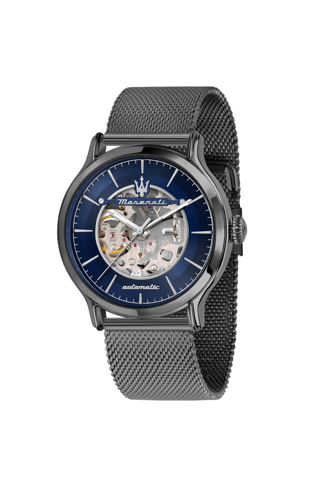 Ανδρικό ρολόι MASERATI EPOCA R8823118012 διαμέτρου 42mm, με αυτόματο μηχανισμό, μπλε καντράν και μπρασελέ από ανοξείδωτο ατσάλι.