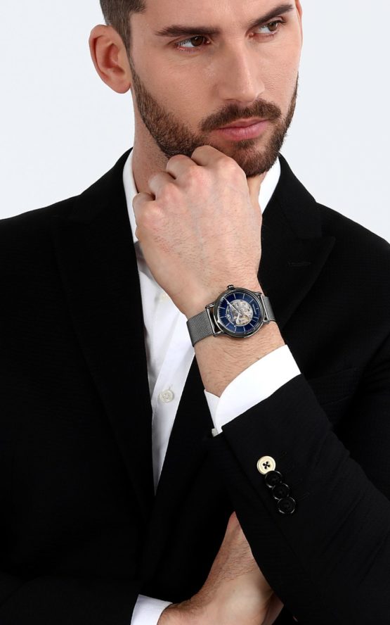 Αντρικό ρολόι διαμέτρου 42mm με αυτόματο μηχανισμό. Έχει μπλε καντράν με ασημένιους δείκτες και λεπτομέρειες. Η κάσα του είναι από PVD GUN με ορυκτό κρύσταλλο με επικάλυψη από ζαφείρι. Έχει μπρασελέ από ανοξείδωτο ατσάλι και κούμπωμα κλιπ. Είναι αδιάβροχο (10 ATM).