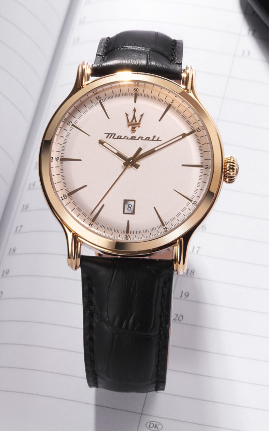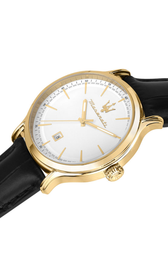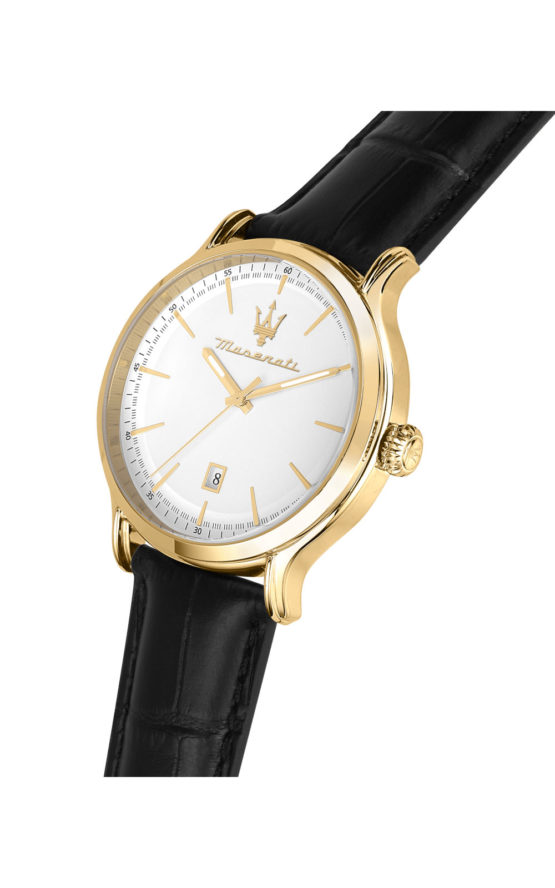 Ανδρικό ρολόι MASERATI EPOCA R8851118015 διαμέτρου 42mm, με μηχανισμό Quartz ακριβείας, λευκό καντράν, κάσα από ανοξείδωτο ατσάλι και δερμάτινο λουράκι.