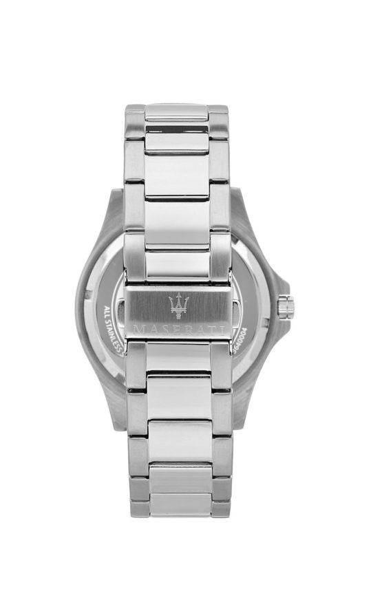 Ανδρικό ρολόι MASERATI SFIDA R8853140002 διαμέτρου 44mm, με μηχανισμό Quartz ακριβείας, μαύρο καντράν, κάσα και μπρασελέ από ανοξείδωτο ατσάλι.
