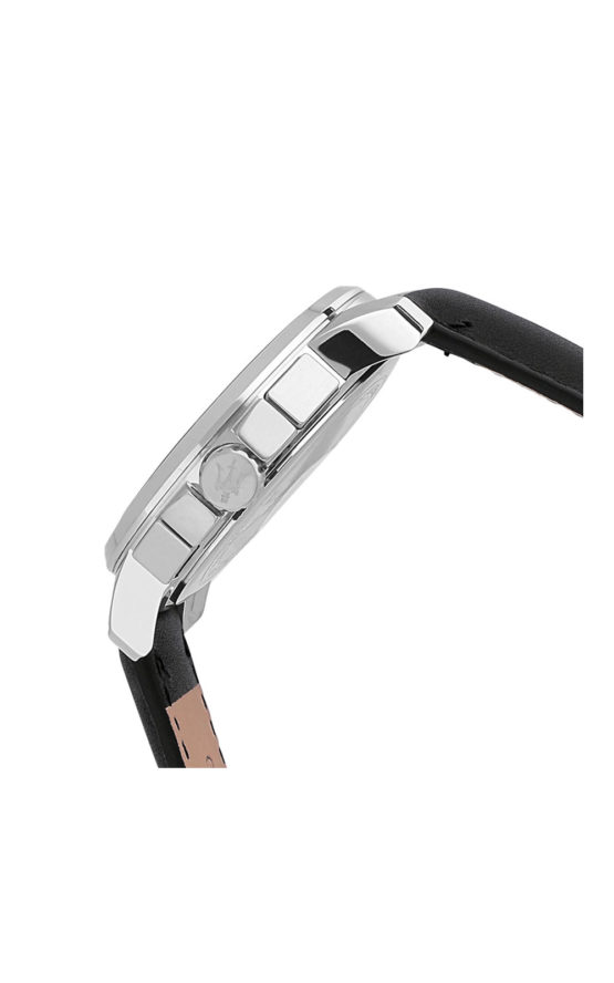 Αντρικό ρολόι διαμέτρου 44mm με μηχανισμό QUARTZ Multi-Function ακριβείας. Έχει ασημένιο καντράν με ασημένιους δείκτες, μπλε λεπτομέρειες και ένδειξη ημερομηνίας. Η κάσα του είναι από ανοξείδωτο ατσάλι με κρύσταλλο από ορυκτό κρύσταλλο ειδικής σκλήρυνσης. Έχει δερμάτινο λουράκι μαύρου χρώματος και κούμπωμα τοκάς. Είναι αδιάβροχο (5 ATM).