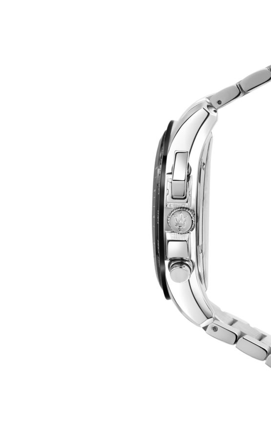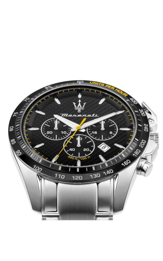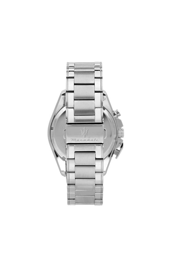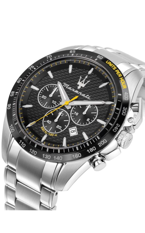 Ανδρικό ρολόι MASERATI TRAGUARDO R8873612042 διαμέτρου 45mm, με μηχανισμό Quartz χρονογράφου ακριβείας, μαύρο καντράν, και κάσα – μπρασελέ από ανοξείδωτο ατσάλι.