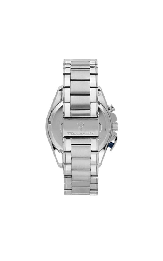 Ανδρικό ρολόι MASERATI TRAGUARDO R8873612043 διαμέτρου 45mm, με μηχανισμό QUARTZ χρονογράφου ακριβείας, μπλε καντράν, κάσα και μπρασελέ από ανοξείδωτο ατσάλι.