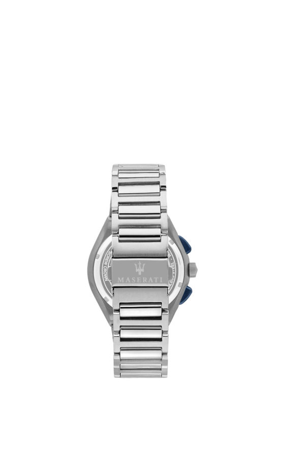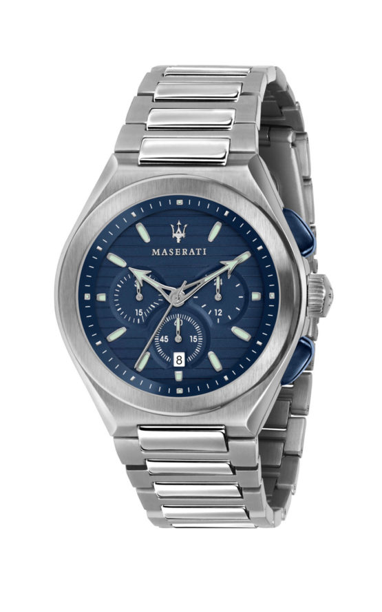 Ανδρικό ρολόι MASERATI TRICONIC R8873639001 διαμέτρου 43mm, με μηχανισμό QUARTZ χρονογράφου ακριβείας, μπλε καντράν και κάσα – μπρασελέ από ανοξείδωτο ατσάλι.