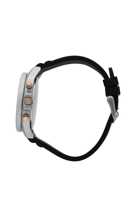 Ανδρικό ρολόι διαμέτρου 44mm, με μηχανισμό Quartz χρονογράφου ακριβείας. Έχει μαύρο καντράν με επίχρυσους δείκτες και λεπτομέρειες και ένδειξη ημερομηνίας. Η κάσα του είναι από ανοξείδωτο ατσάλι με κρύσταλλο από ορυκτό κρύσταλλο ειδικής σκλήρυνσης. Έχει καουτσούκ λουράκι μαύρου χρώματος και κούμπωμα τοκάς. Είναι αδιάβροχο (10 ATM).