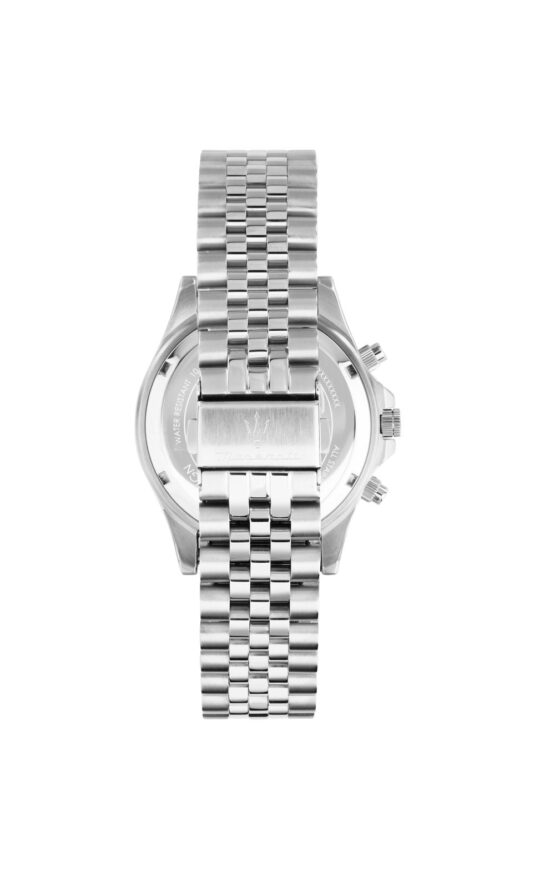 Ανδρικό ρολόι MASERATI SFIDA R8873640025 διαμέτρου 44mm, με μηχανισμό QUARTZ χρονογράφου ακριβείας, μπλε καντράν, κάσα και μπρασελέ από ανοξείδωτο ατσάλι.
