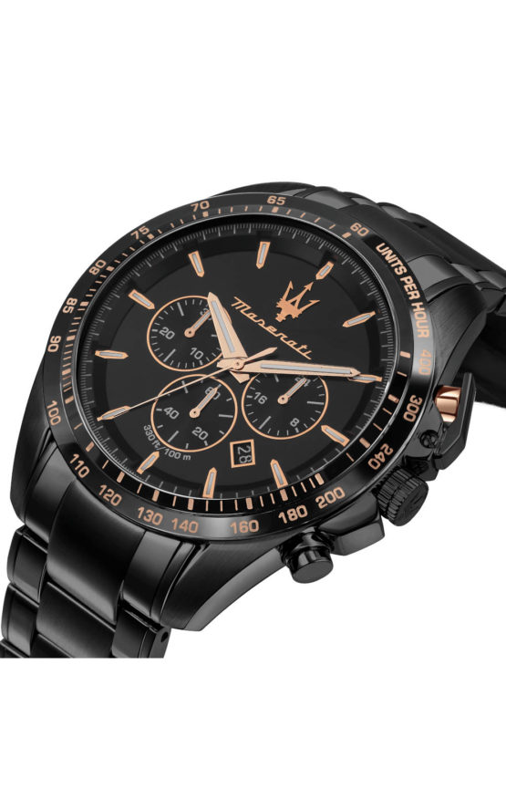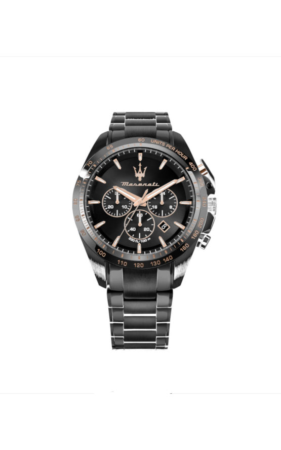 Ανδρικό ρολόι MASERATI TRAGUARDO R8873612048 διαμέτρου 45mm, με αυτόματο μηχανισμό, μαύρο καντράν και κάσα – μπρασελέ από ανοξείδωτο ατσάλι.