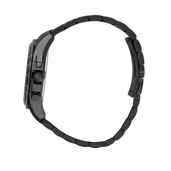Αντρικό ρολόι διαμέτρου 45mm με μηχανισμό Quartz Χρονογράφος Ακριβείας. Έχει μαύρο καντράν με επίχρυσους δείκτες και λευκές λεπτομέρειες. Η κάσα του είναι μαύρη από ανοξείδωτο ατσάλι με επίχρυσες λεπτομέρειες και ορυκτό κρύσταλλο. Έχει μαύρο μπρασελέ από ανοξείδωτο ατσάλι και κούμπωμα ασφαλείας. Είναι αδιάβροχο (10 ΑΤΜ).