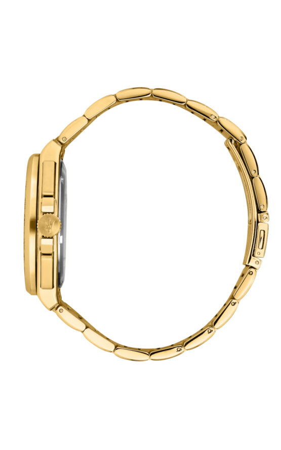 Ανδρικό ρολόι Quartz χρονογράφος ακριβείας διαμέτρου 43mm. Έχει μπλε καντράν με χρυσούς δείκτες, και λεπτομέρειες. Η κάσα του είναι από ανοξείδωτο ατσάλι με κρύσταλλο από ορυκτό κρύσταλλο. Έχει μπρασελέ από ανοξείδωτο ατσάλι και κούμπωμα ασφαλείας. Είναι αδιάβροχο (10 ATM).