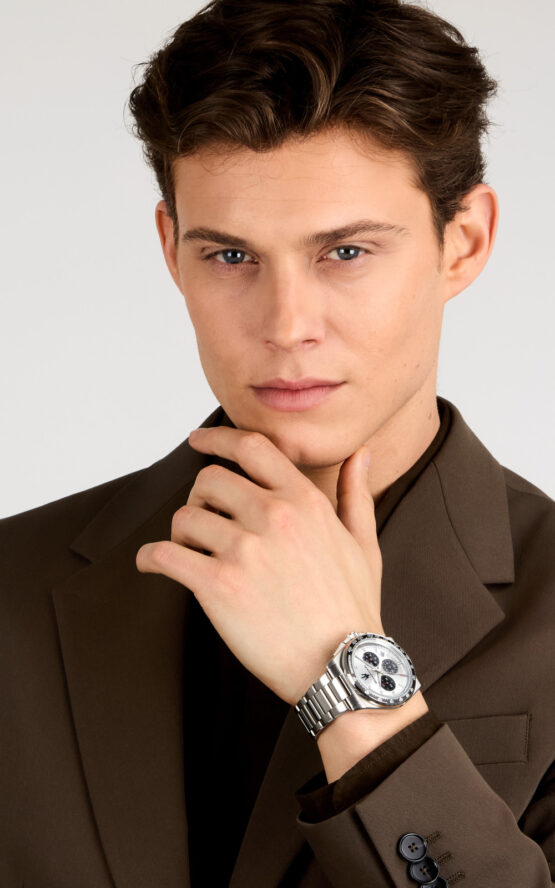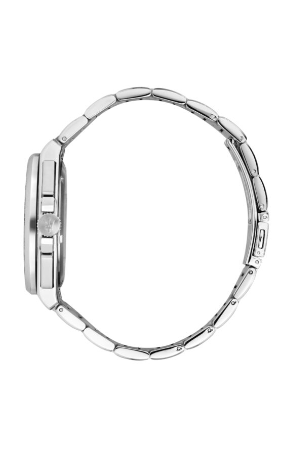 Ανδρικό ρολόι Quartz χρονογράφος ακριβείας διαμέτρου 43mm. Έχει ασημί καντράν με ασημένιους δείκτες, και λεπτομέρειες. Η κάσα του είναι από ανοξείδωτο ατσάλι με κρύσταλλο από ορυκτό κρύσταλλο. Έχει μπρασελέ από ανοξείδωτο ατσάλι και κούμπωμα ασφαλείας. Είναι αδιάβροχο (10 ATM).