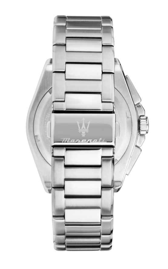 Ανδρικό ρολόι MASERATI VELOCITA R8873652006 διαμέτρου 43mm, με μηχανισμό Quartz χρονογράφος ακριβείας, ασημί καντράν, κάσα και μπρασελέ από ανοξείδωτο ατσάλι.