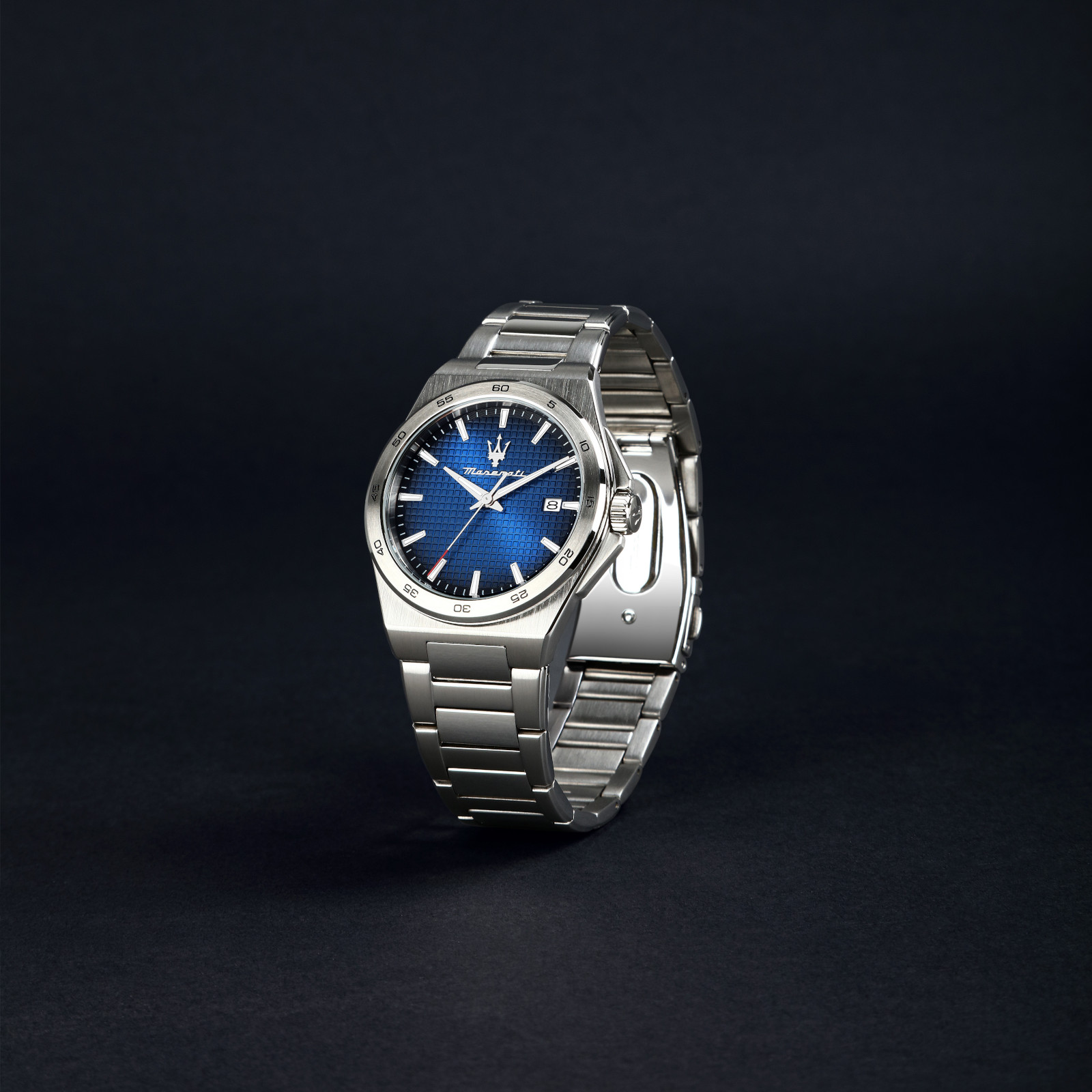 Ανδρικό ρολόι MASERATI VELOCITA SLIM R8853153001 διαμέτρου 40mm, με μηχανισμό Quartz Ακριβείας, μπλε καντράν, κάσα και μπρασελέ από ανοξείδωτο ατσάλι.