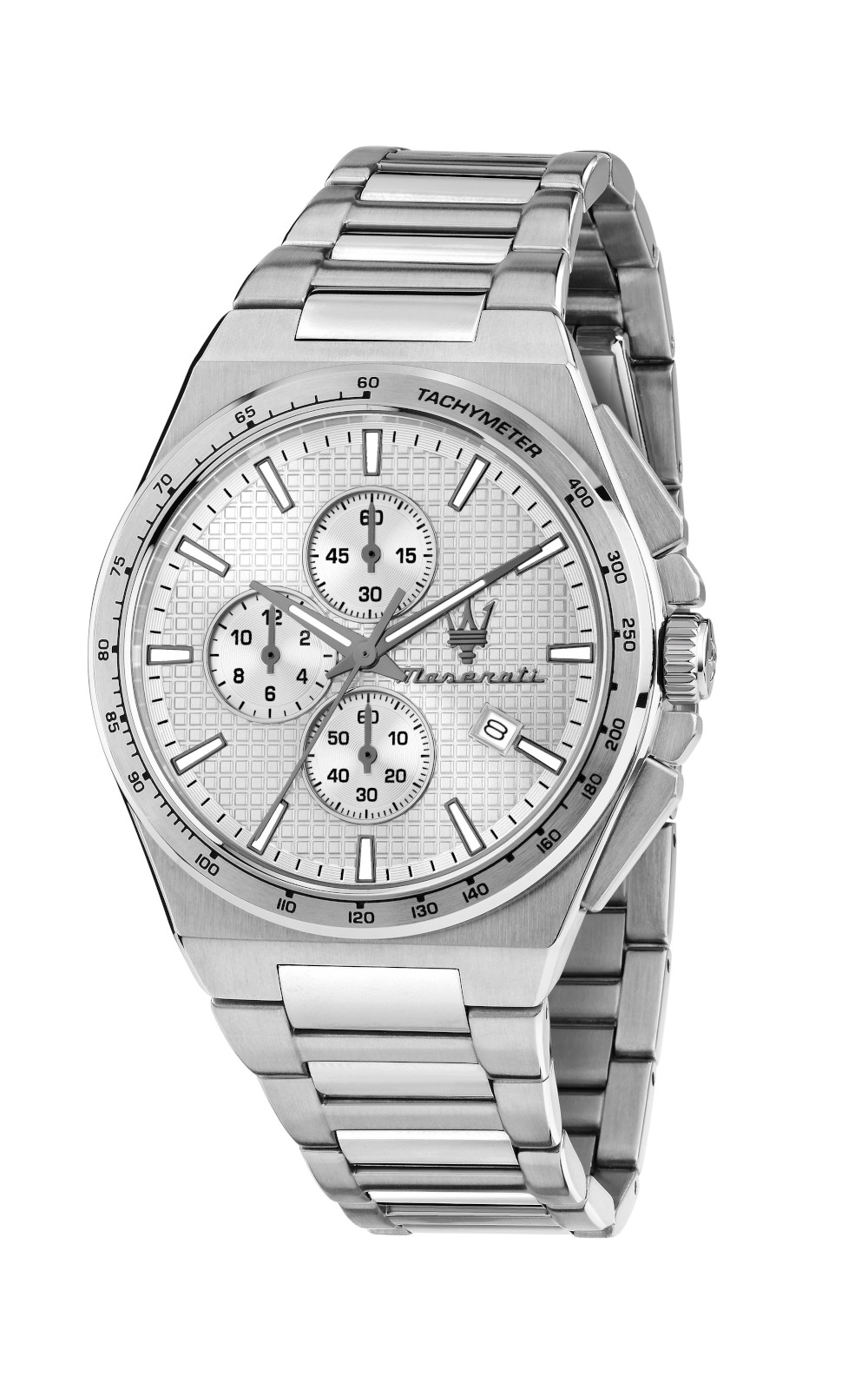 Ανδρικό ρολόι MASERATI VELOCITA SLIM R8873653005 διαμέτρου 41mm, με μηχανισμό Quartz Χρονογράφος Ακριβείας, ασημί καντράν, κάσα και μπρασελέ από ανοξείδωτο ατσάλι.